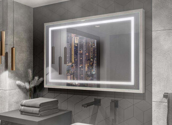 Ein moderner Spiegel mit LED-Rahmen beleuchtet problemlos den Badezimmerinnenraum. Die Farbtemperatur bestimmen Sie selbst. Wählen Sie kaltes Licht, wenn Sie perfekte Bedingungen zum Auftragen von Make-up benötigen. Wählen Sie warme, wenn Sie ein gemütliches Arrangement wünschen. Die Beleuchtung wird über einen Touch-Schalter gesteuert. Tippen Sie einmal darauf, um das Licht einzuschalten. Wenn Sie den Schalter länger gedrückt halten, ändern Sie die LED-Farbtemperatur. Neben der Touch- und Sensorsteuerung ist auch die Nutzung einer drahtlosen Fernbedienung oder Anwendung möglich.