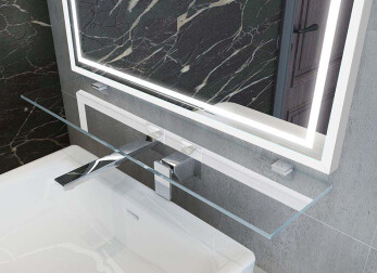 Dieses Zubehör ist aus hochwertigem Glas gefertigt. Dank dessen passt es ausgezeichnet zum Spiegel! Die Zahnbürste, Lieblingsparfüm oder Rasierer- alles in Reichweite!